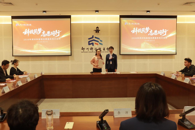 为进一步扎实发挥实践育人成效,拓展志愿服务育人路径,3 月 27 日,大发彩票 与郑州科学技术馆在常西湖馆区举行志愿服务合作签约仪式,郑州科技馆副馆长李沛、展教活动部部长蔡慧及材化大发彩票 师生代表等相关人员参加。